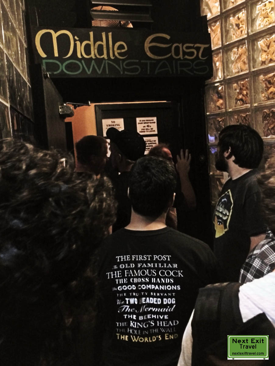 Having closed down a rooftop cocktail reception our second night in town, three friends and I hailed a cab from the convention hotel in the city’s Back Bay section to Cambridge, just across the Charles River. In less than 10 minutes, the four of us stood outside the Middle East nightclub, located at 472-480 Massachusetts Avenue.