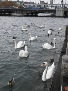 The rain let up and it turned into a beautiful day. I walked through part of the old town and down to the Opera House. From there I walked to Lake Zurich where I was gifted with the most amazing sight. A flock of about ten swans took off from the lake. I didn’t bother trying to photograph them because I was afraid I would miss watching them take flight. Along the lake I saw more swans, ducks, coots, and what I think may have been a raven. Those moments are why I travel.