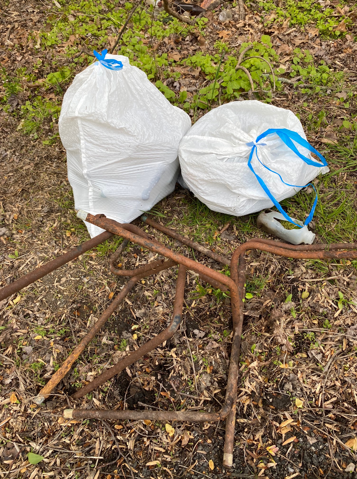 Walking down Factory Road was different. What was dark and foreboding in a car was now lush and peaceful. What was scary at 40 mph was really rather pleasant on foot. The hills provided a physical release from pent up anxiety and energy. WPT and I had found a perfect quarantine walk. We saw deer, a fox, plants, and once we even watched a bald eagle glide overhead. We also saw a lot of garbage. It was evident that people used the road as a dumping ground, throwing food and bottles from their cars.