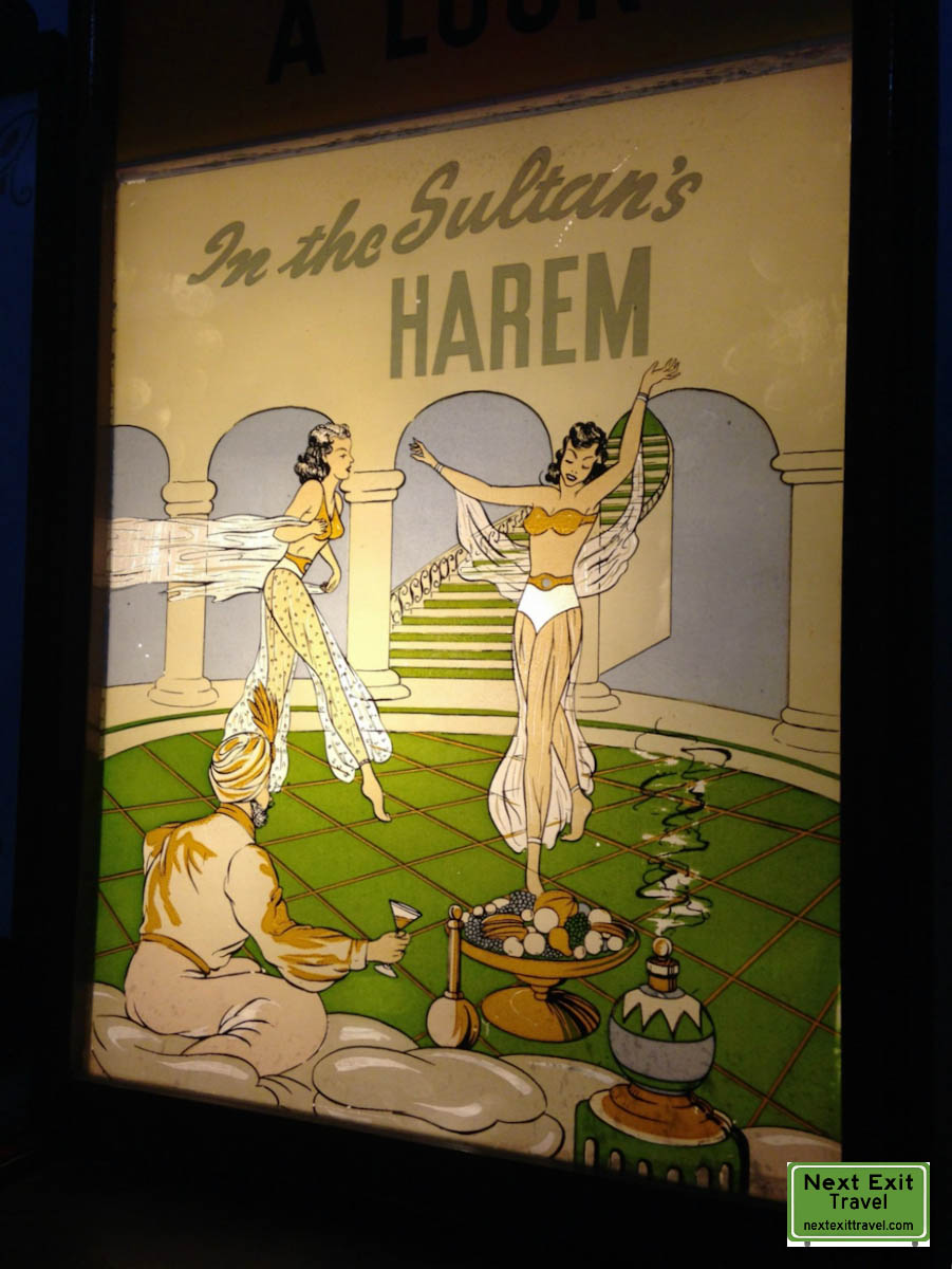 The French aren’t the only ones in the Musee’s phantasmagorical collection that show Grand Theft Auto how it’s done; there’s also an “English Execution”. Indeed, violent and nefarious scenes pervade these machines, some of which date back to the 19th century. One could easily picture a young Thomas De Quincey dropping coins in the “Opium Den”. Elsewhere, the shifty-eyed “Flasher” earns his moniker while “Laffing Sal” and “Jolly Jack” manically yuk it up against the strains of a century-old Wurlitzer Orchestrion.