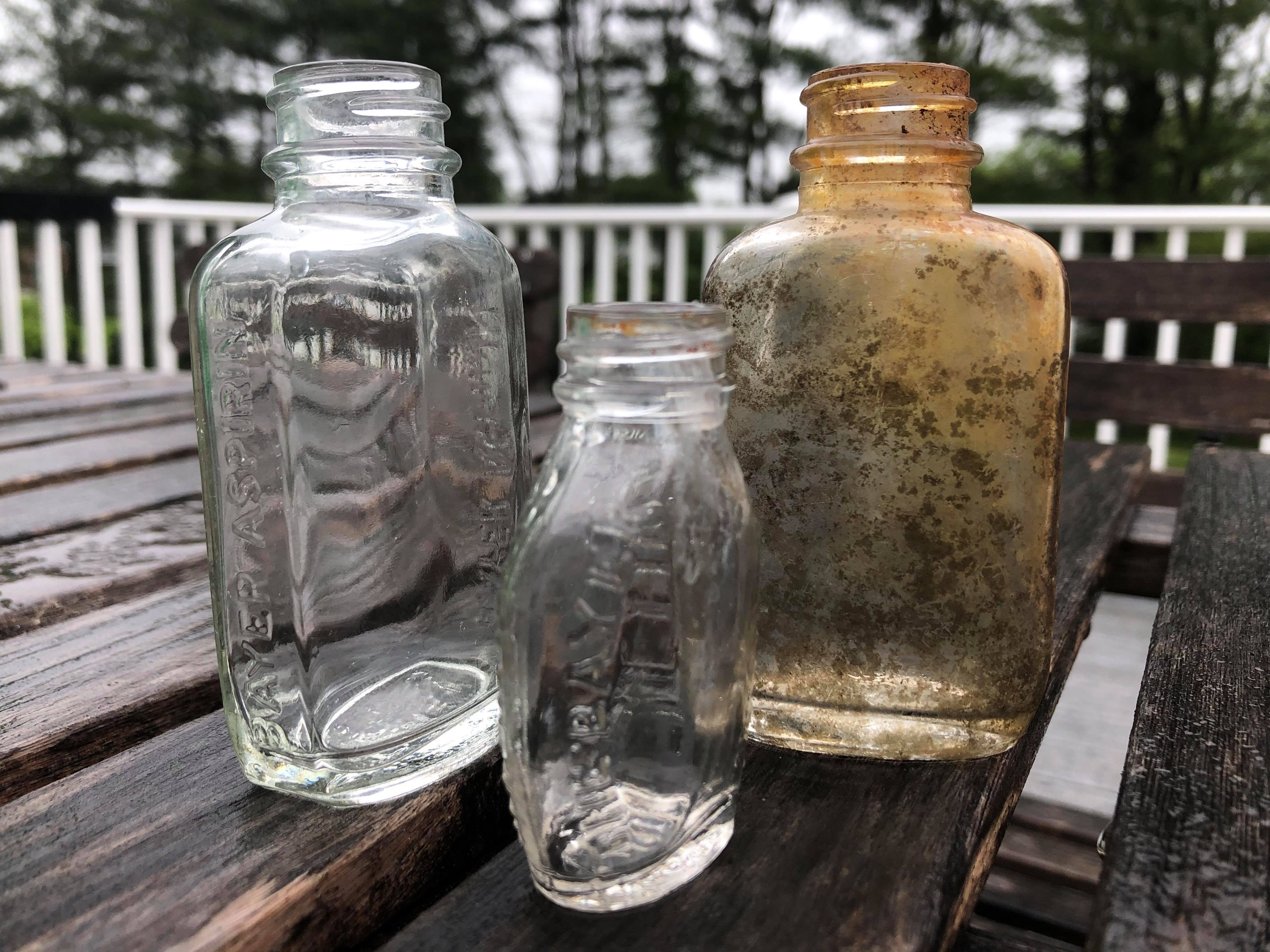 We’ve resurrected several items from the forest floor. Much of the glass has cleaned up beautifully. Apothecary bottles of all colors, shapes, and sizes now line our kitchen sills like the usual snake-oil suspects. Beside a blue-tinted Ball Perfect Mason jar, a King Syrup bottle holds freshly cut flowers from the yard. Even an ordinary glass salt shaker that would have been at home on any Cold War kitchen table once again fulfills its intended purpose.